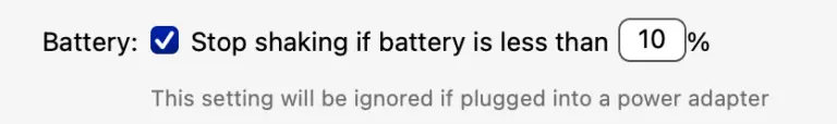 Worried about your battery running out? Mouse Shaker allows you to set a specific battery percentage at which it will stop jiggling. You choose the threshold, ensuring that you never end up with a dead battery unexpectedly.