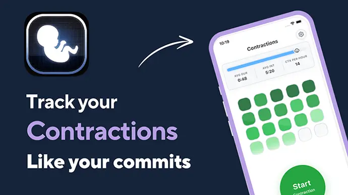 Instead of a wall of numbers, you see your contraction pattern evolve visually, like a GitHub activity chart. It’s instantly clear when you’re entering active labor.